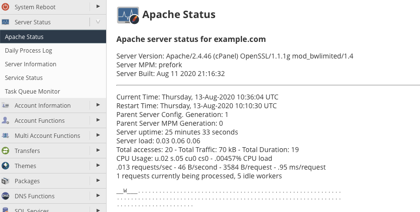 The Apache web server is a critical component of your web hosting operation, so we display a comprehensive selection of performance and status information on a single page.