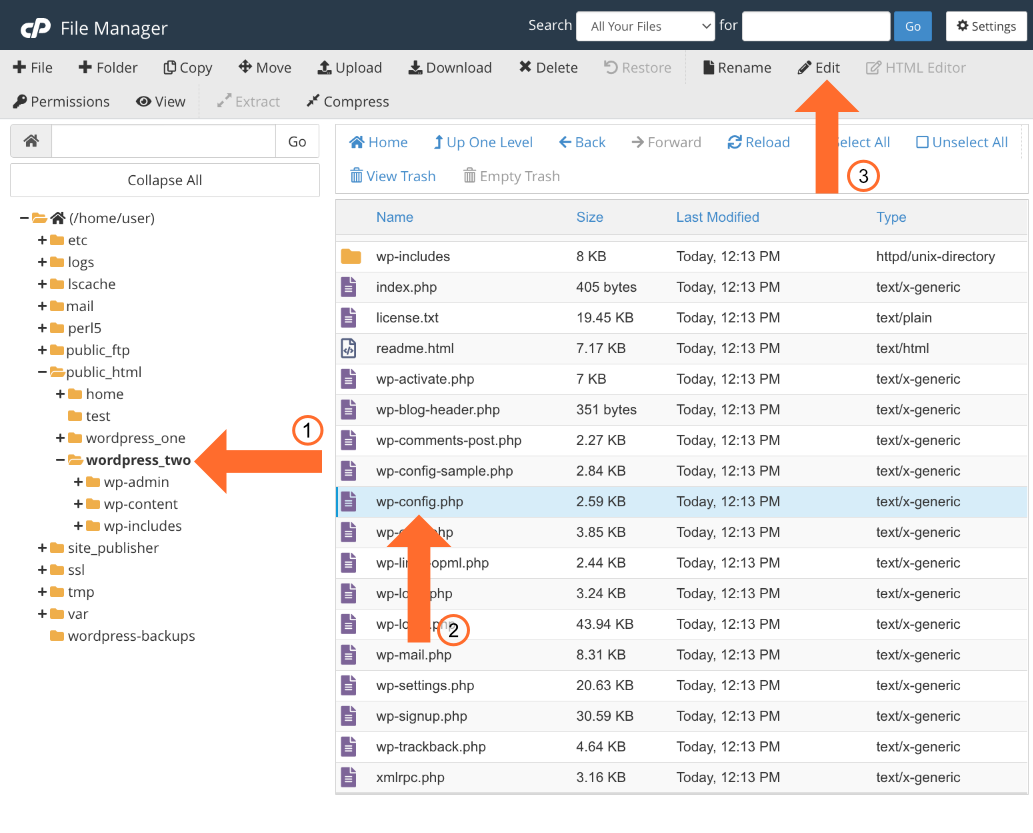 - Select the wp–config.php file.